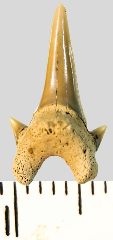 Зуб. Акула. Archaeolamna cf. kopingensis (Davis, 1890). Классификация: Хордовые Chordata, Позвоночные Vertebrata, Хрящевые рыбы Chondrichthyes, Пластиножаберные Elasmobranchii, Акулы Selachii, Ламнообразные Lamniformes, Cretoxyrhinidae
