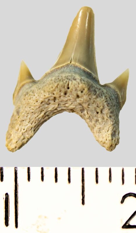 Зуб. Акула. Archaeolamna cf. kopingensis (Davis, 1890). Классификация: Хордовые Chordata, Позвоночные Vertebrata, Хрящевые рыбы Chondrichthyes, Пластиножаберные Elasmobranchii, Акулы Selachii, Ламнообразные Lamniformes, Cretoxyrhinidae