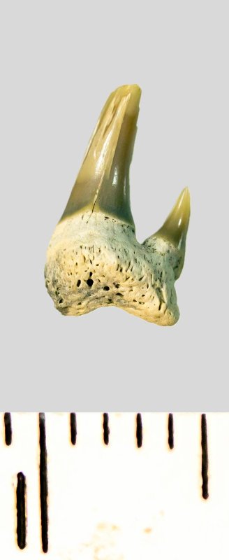 Зуб. Акула. Archaeolamna cf. kopingensis (Davis, 1890). Классификация: Хордовые Chordata, Позвоночные Vertebrata, Хрящевые рыбы Chondrichthyes, Пластиножаберные Elasmobranchii, Акулы Selachii, Ламнообразные Lamniformes, Cretoxyrhinidae
