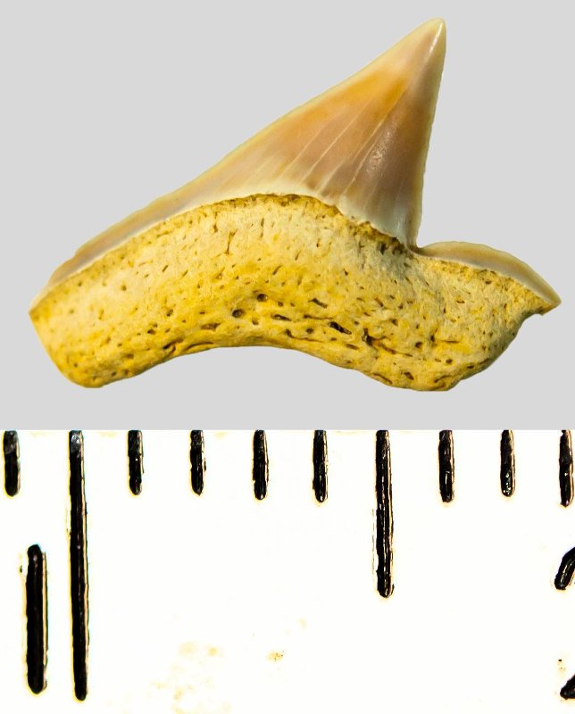 Зуб. Акула. Palaeoanacorax volgensis Glickman, 1971. Классификация: Хордовые Chordata, Позвоночные Vertebrata, Хрящевые рыбы Chondrichthyes, Пластиножаберные Elasmobranchii, Акулы Selachii, Ламнообразные Lamniformes, Anacoracidae