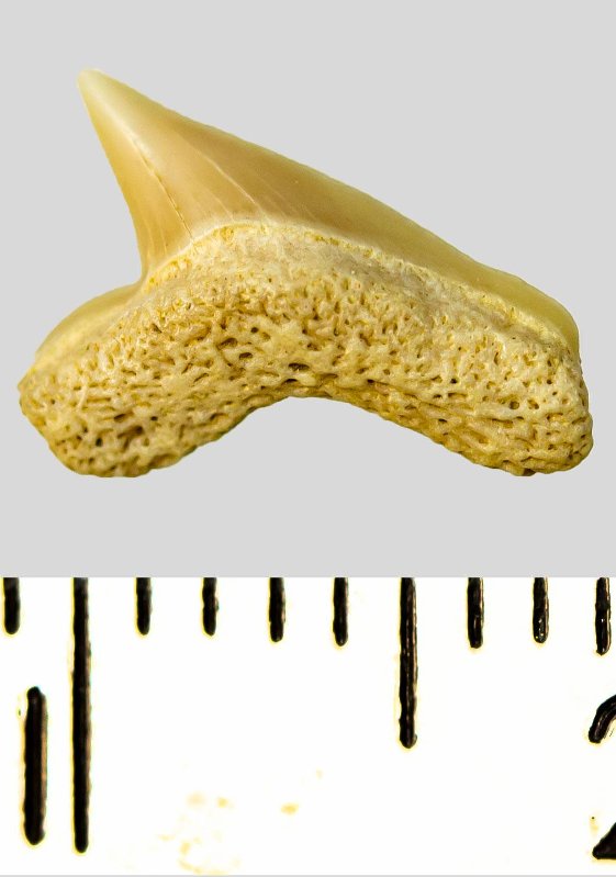 Зуб. Акула. Palaeoanacorax volgensis Glickman, 1971. Классификация: Хордовые Chordata, Позвоночные Vertebrata, Хрящевые рыбы Chondrichthyes, Пластиножаберные Elasmobranchii, Акулы Selachii, Ламнообразные Lamniformes, Anacoracidae