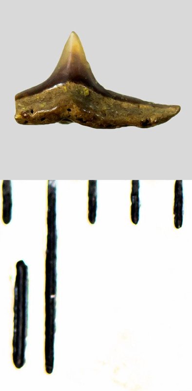 Зуб. Морские ангелы. Squatina cranei (Woodward, 1888). Классификация: Хордовые Chordata, Позвоночные Vertebrata, Хрящевые рыбы Chondrichthyes, Пластиножаберные Elasmobranchii, Акулы Selachii, Скватинообразные Squatiniformes, Морские ангелы Squatinidae
