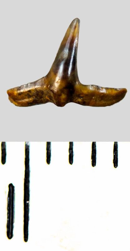 Зуб. Морские ангелы. Squatina cranei (Woodward, 1888). Классификация: Хордовые Chordata, Позвоночные Vertebrata, Хрящевые рыбы Chondrichthyes, Пластиножаберные Elasmobranchii, Акулы Selachii, Скватинообразные Squatiniformes, Морские ангелы Squatinidae