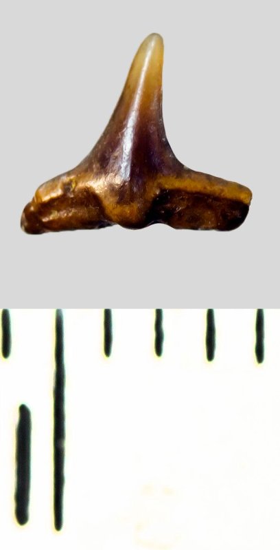 Зуб. Морские ангелы. Squatina cranei (Woodward, 1888). Классификация: Хордовые Chordata, Позвоночные Vertebrata, Хрящевые рыбы Chondrichthyes, Пластиножаберные Elasmobranchii, Акулы Selachii, Скватинообразные Squatiniformes, Морские ангелы Squatinidae
