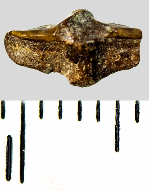 Зуб (фрагмент). Морские ангелы. Squatina cranei (Woodward, 1888). Классификация: Хордовые Chordata, Позвоночные Vertebrata, Хрящевые рыбы Chondrichthyes, Пластиножаберные Elasmobranchii, Акулы Selachii, Скватинообразные Squatiniformes, Морские ангелы Squatinidae