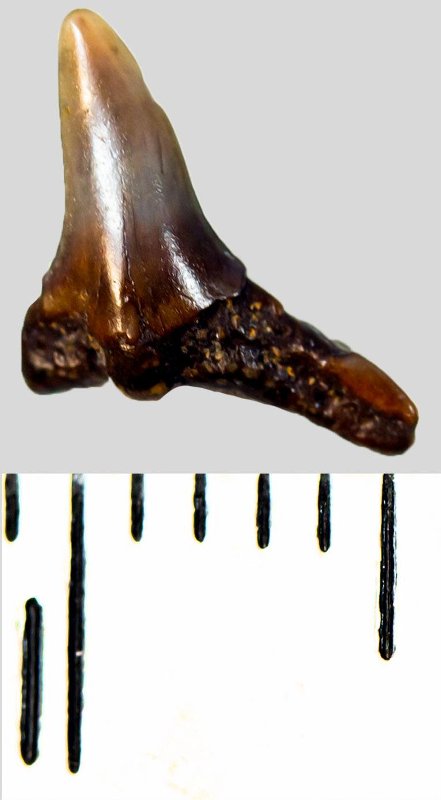 Зуб. Морские ангелы. Squatina cranei (Woodward, 1888). Классификация: Хордовые Chordata, Позвоночные Vertebrata, Хрящевые рыбы Chondrichthyes, Пластиножаберные Elasmobranchii, Акулы Selachii, Скватинообразные Squatiniformes, Морские ангелы Squatinidae