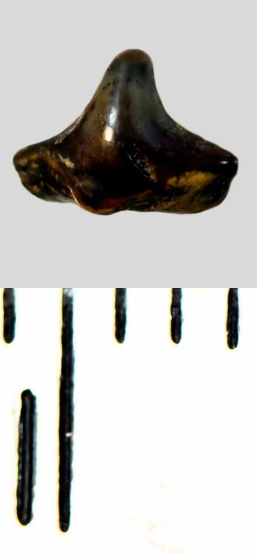 Зуб. Морские ангелы. Squatina cranei (Woodward, 1888). Классификация: Хордовые Chordata, Позвоночные Vertebrata, Хрящевые рыбы Chondrichthyes, Пластиножаберные Elasmobranchii, Акулы Selachii, Скватинообразные Squatiniformes, Морские ангелы Squatinidae
