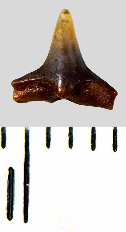 Зуб. Морские ангелы. Squatina cranei (Woodward, 1888). Классификация: Хордовые Chordata, Позвоночные Vertebrata, Хрящевые рыбы Chondrichthyes, Пластиножаберные Elasmobranchii, Акулы Selachii, Скватинообразные Squatiniformes, Морские ангелы Squatinidae