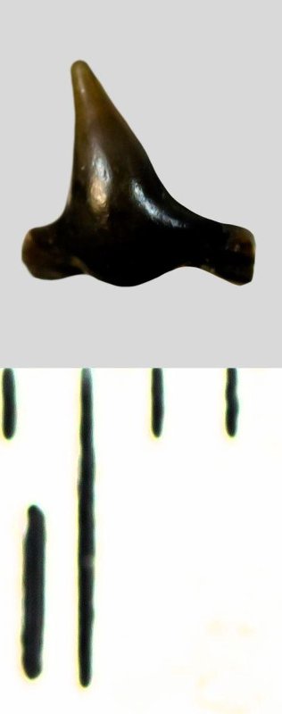 Зуб. Морские ангелы. Squatina cranei (Woodward, 1888). Классификация: Хордовые Chordata, Позвоночные Vertebrata, Хрящевые рыбы Chondrichthyes, Пластиножаберные Elasmobranchii, Акулы Selachii, Скватинообразные Squatiniformes, Морские ангелы Squatinidae