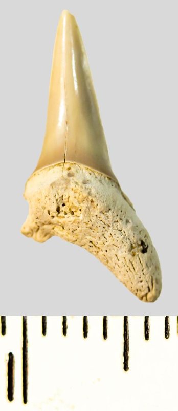 Зуб. Акула. Archaeolamna cf. kopingensis (Davis, 1890). Классификация: Хордовые Chordata, Позвоночные Vertebrata, Хрящевые рыбы Chondrichthyes, Пластиножаберные Elasmobranchii, Акулы Selachii, Ламнообразные Lamniformes, Cretoxyrhinidae