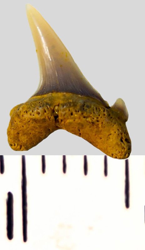 Зуб. Акула. Eostriatolamia subulata (Agassiz, 1843). Классификация: Хордовые Chordata, Позвоночные Vertebrata, Хрящевые рыбы Chondrichthyes, Пластиножаберные Elasmobranchii, Акулы Selachii, Ламнообразные Lamniformes, Песчаные акулы Odontaspididae