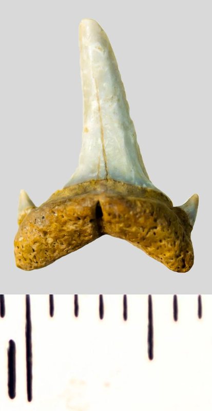 Зуб. Акула. Eostriatolamia subulata (Agassiz, 1843). Классификация: Хордовые Chordata, Позвоночные Vertebrata, Хрящевые рыбы Chondrichthyes, Пластиножаберные Elasmobranchii, Акулы Selachii, Ламнообразные Lamniformes, Песчаные акулы Odontaspididae