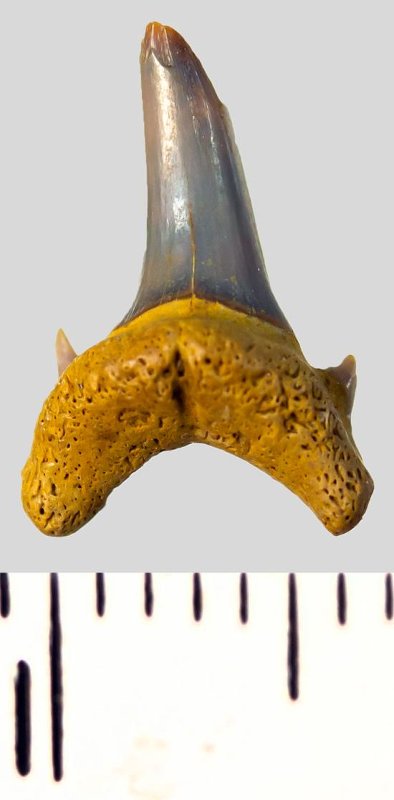 Зуб. Акула. Eostriatolamia subulata (Agassiz, 1843). Классификация: Хордовые Chordata, Позвоночные Vertebrata, Хрящевые рыбы Chondrichthyes, Пластиножаберные Elasmobranchii, Акулы Selachii, Ламнообразные Lamniformes, Песчаные акулы Odontaspididae