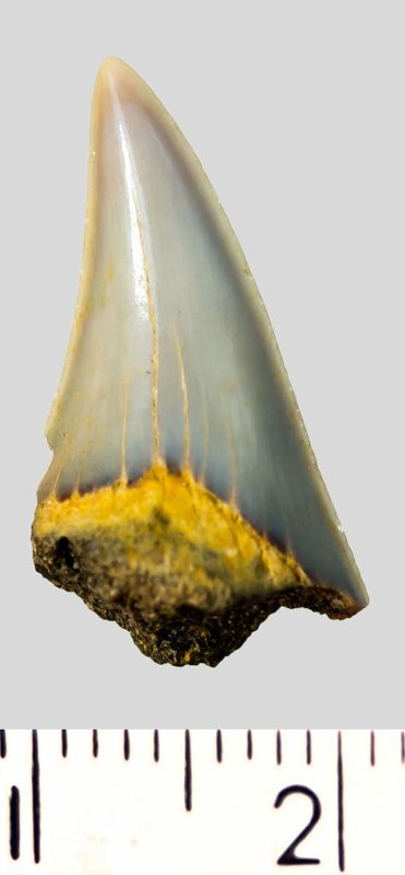 Зуб (фрагмент). Акула. Cretoxyrhina denticulata (Glueckman, 1957). Классификация: Хордовые Chordata, Позвоночные Vertebrata, Хрящевые рыбы Chondrichthyes, Пластиножаберные Elasmobranchii, Акулы Selachii, Ламнообразные Lamniformes, Cretoxyrhinidae