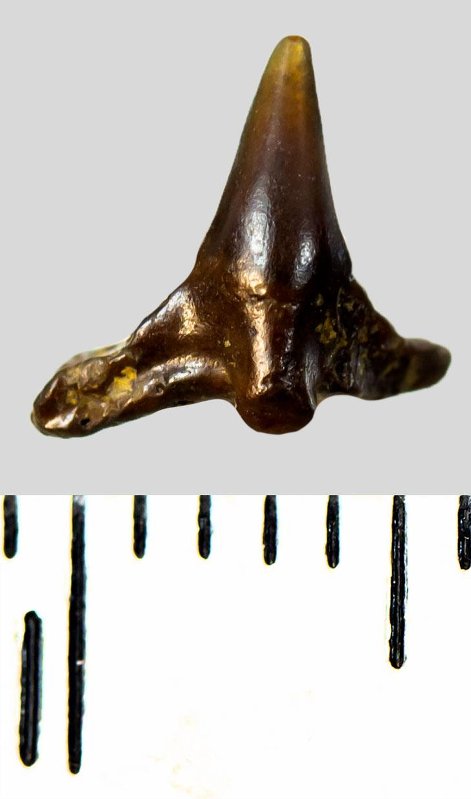 Зуб. Морские ангелы. Squatina cranei (Woodward, 1888). Классификация: Хордовые Chordata, Позвоночные Vertebrata, Хрящевые рыбы Chondrichthyes, Пластиножаберные Elasmobranchii, Акулы Selachii, Скватинообразные Squatiniformes, Морские ангелы Squatinidae