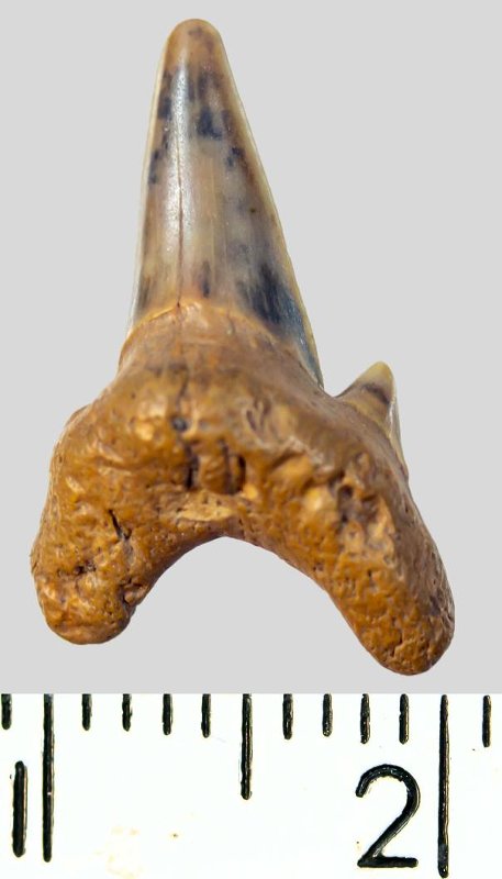 Зуб. Акула. Archaeolamna cf. kopingensis (Davis, 1890). Классификация: Хордовые Chordata, Позвоночные Vertebrata, Хрящевые рыбы Chondrichthyes, Пластиножаберные Elasmobranchii, Акулы Selachii, Ламнообразные Lamniformes, Cretoxyrhinidae