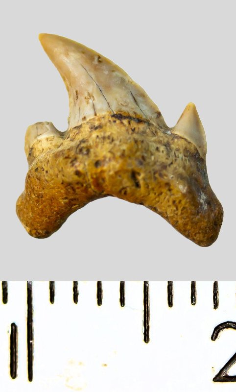 Зуб. Акула. Archaeolamna cf. kopingensis (Davis, 1890). Классификация: Хордовые Chordata, Позвоночные Vertebrata, Хрящевые рыбы Chondrichthyes, Пластиножаберные Elasmobranchii, Акулы Selachii, Ламнообразные Lamniformes, Cretoxyrhinidae
