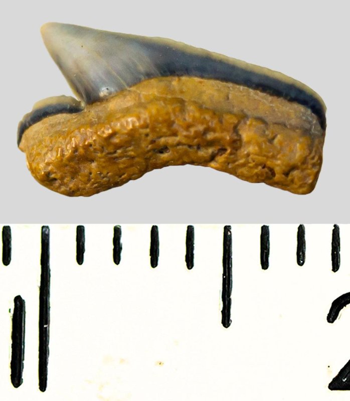 Зуб. Акула. Palaeoanacorax volgensis Glickman, 1971. Классификация: Хордовые Chordata, Позвоночные Vertebrata, Хрящевые рыбы Chondrichthyes, Пластиножаберные Elasmobranchii, Акулы Selachii, Ламнообразные Lamniformes, Anacoracidae