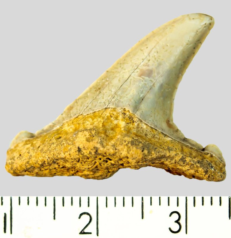 Зуб (фрагмент). Акула. Cretoxyrhina denticulata (Glickman, 1957). Классификация: Хордовые Chordata, Позвоночные Vertebrata, Хрящевые рыбы Chondrichthyes, Пластиножаберные Elasmobranchii, Акулы Selachii, Ламнообразные Lamniformes, Cretoxyrhinidae