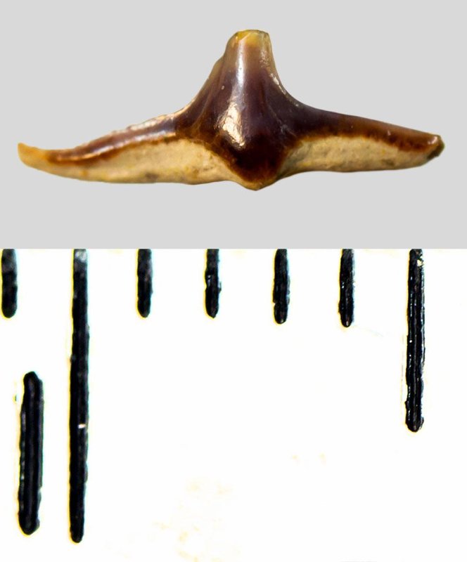 Зуб. Морские ангелы. Squatina cranei (Woodward, 1888). Классификация: Хордовые Chordata, Позвоночные Vertebrata, Хрящевые рыбы Chondrichthyes, Пластиножаберные Elasmobranchii, Акулы Selachii, Скватинообразные Squatiniformes, Морские ангелы Squatinidae