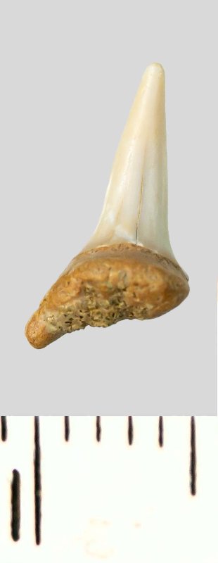Зуб. Акула. Lamniformes gen. indet. Классификация: Хордовые Chordata, Позвоночные Vertebrata, Хрящевые рыбы Chondrichthyes, Пластиножаберные Elasmobranchii, Акулы Selachii, Ламнообразные Lamniformes
