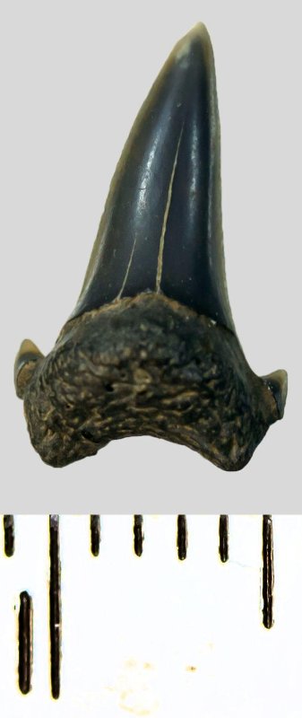 Зуб. Акула. Archaeolamna cf. kopingensis (Davis, 1890). Классификация: Хордовые Chordata, Позвоночные Vertebrata, Хрящевые рыбы Chondrichthyes, Пластиножаберные Elasmobranchii, Акулы Selachii, Ламнообразные Lamniformes, Cretoxyrhinidae