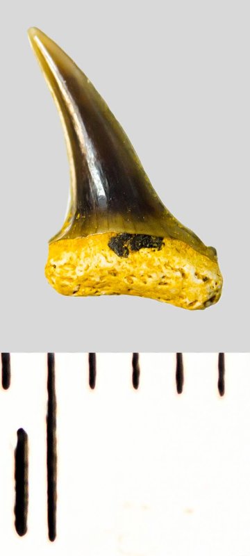 Зуб. Акула. Eostriatolamia subulata (Agassiz, 1843). Классификация: Хордовые Chordata, Позвоночные Vertebrata, Хрящевые рыбы Chondrichthyes, Пластиножаберные Elasmobranchii, Акулы Selachii, Ламнообразные Lamniformes, Песчаные акулы Odontaspididae