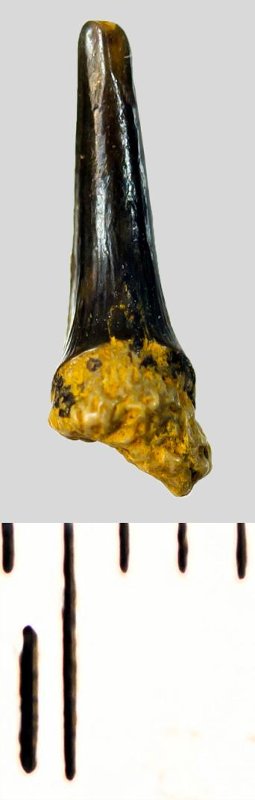 Зуб. Акула. Eostriatolamia subulata (Agassiz, 1843). Классификация: Хордовые Chordata, Позвоночные Vertebrata, Хрящевые рыбы Chondrichthyes, Пластиножаберные Elasmobranchii, Акулы Selachii, Ламнообразные Lamniformes, Песчаные акулы Odontaspididae