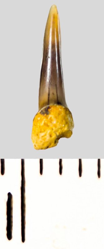 Зуб. Акула. Eostriatolamia subulata (Agassiz, 1843). Классификация: Хордовые Chordata, Позвоночные Vertebrata, Хрящевые рыбы Chondrichthyes, Пластиножаберные Elasmobranchii, Акулы Selachii, Ламнообразные Lamniformes, Песчаные акулы Odontaspididae