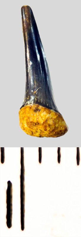 Зуб. Акула. Eostriatolamia subulata (Agassiz, 1843). Классификация: Хордовые Chordata, Позвоночные Vertebrata, Хрящевые рыбы Chondrichthyes, Пластиножаберные Elasmobranchii, Акулы Selachii, Ламнообразные Lamniformes, Песчаные акулы Odontaspididae