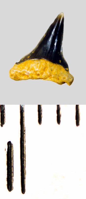 Зуб. Акула. Eostriatolamia subulata (Agassiz, 1843). Классификация: Хордовые Chordata, Позвоночные Vertebrata, Хрящевые рыбы Chondrichthyes, Пластиножаберные Elasmobranchii, Акулы Selachii, Ламнообразные Lamniformes, Песчаные акулы Odontaspididae