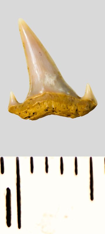 Зуб (фрагмент). Акула. Eostriatolamia subulata (Agassiz, 1843). Классификация: Хордовые Chordata, Позвоночные Vertebrata, Хрящевые рыбы Chondrichthyes, Пластиножаберные Elasmobranchii, Акулы Selachii, Ламнообразные Lamniformes, Песчаные акулы Odontaspididae