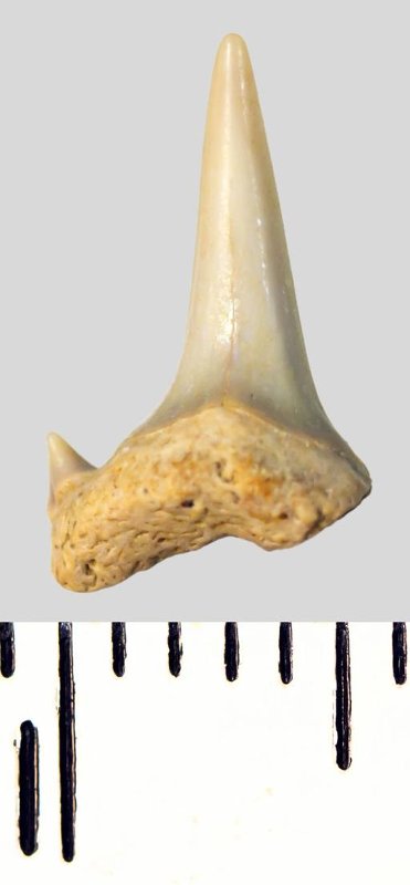 Зуб. Акула. Eostriatolamia subulata (Agassiz, 1843). Классификация: Хордовые Chordata, Позвоночные Vertebrata, Хрящевые рыбы Chondrichthyes, Пластиножаберные Elasmobranchii, Акулы Selachii, Ламнообразные Lamniformes, Песчаные акулы Odontaspididae
