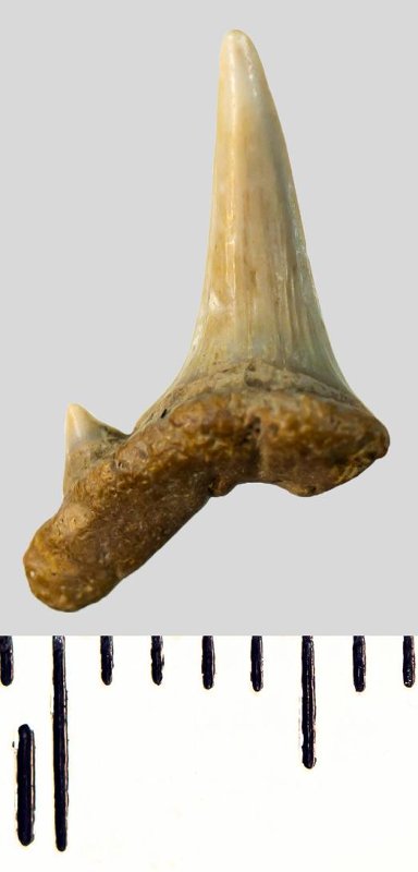 Зуб. Акула. Eostriatolamia subulata (Agassiz, 1843). Классификация: Хордовые Chordata, Позвоночные Vertebrata, Хрящевые рыбы Chondrichthyes, Пластиножаберные Elasmobranchii, Акулы Selachii, Ламнообразные Lamniformes, Песчаные акулы Odontaspididae