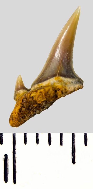 Зуб. Акула. Eostriatolamia subulata (Agassiz, 1843). Классификация: Хордовые Chordata, Позвоночные Vertebrata, Хрящевые рыбы Chondrichthyes, Пластиножаберные Elasmobranchii, Акулы Selachii, Ламнообразные Lamniformes, Песчаные акулы Odontaspididae