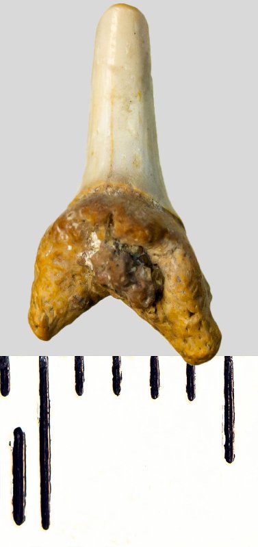 Зуб. Акула. Eostriatolamia subulata (Agassiz, 1843). Классификация: Хордовые Chordata, Позвоночные Vertebrata, Хрящевые рыбы Chondrichthyes, Пластиножаберные Elasmobranchii, Акулы Selachii, Ламнообразные Lamniformes, Песчаные акулы Odontaspididae