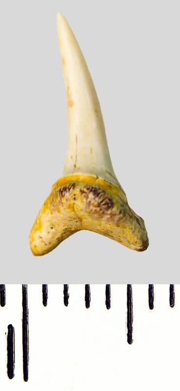 Зуб. Акула. Eostriatolamia subulata (Agassiz, 1843). Классификация: Хордовые Chordata, Позвоночные Vertebrata, Хрящевые рыбы Chondrichthyes, Пластиножаберные Elasmobranchii, Акулы Selachii, Ламнообразные Lamniformes, Песчаные акулы Odontaspididae