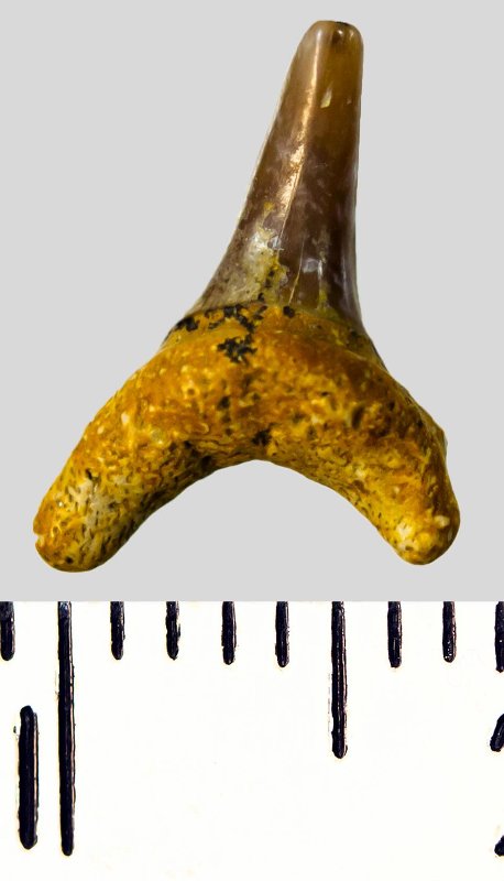 Зуб. Акула. Eostriatolamia subulata (Agassiz, 1843). Классификация: Хордовые Chordata, Позвоночные Vertebrata, Хрящевые рыбы Chondrichthyes, Пластиножаберные Elasmobranchii, Акулы Selachii, Ламнообразные Lamniformes, Песчаные акулы Odontaspididae