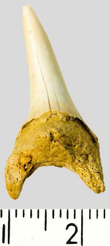 Зуб. Акула. Cretoxyrhina denticulata (Glueckman, 1957). Классификация: Хордовые Chordata, Позвоночные Vertebrata, Хрящевые рыбы Chondrichthyes, Пластиножаберные Elasmobranchii, Акулы Selachii, Ламнообразные Lamniformes, Cretoxyrhinidae