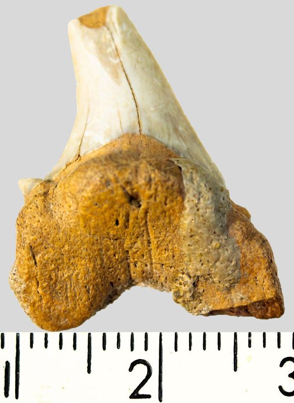 Зуб. Акула. Cretoxyrhina denticulata (Glueckman, 1957). Классификация: Хордовые Chordata, Позвоночные Vertebrata, Хрящевые рыбы Chondrichthyes, Пластиножаберные Elasmobranchii, Акулы Selachii, Ламнообразные Lamniformes, Cretoxyrhinidae