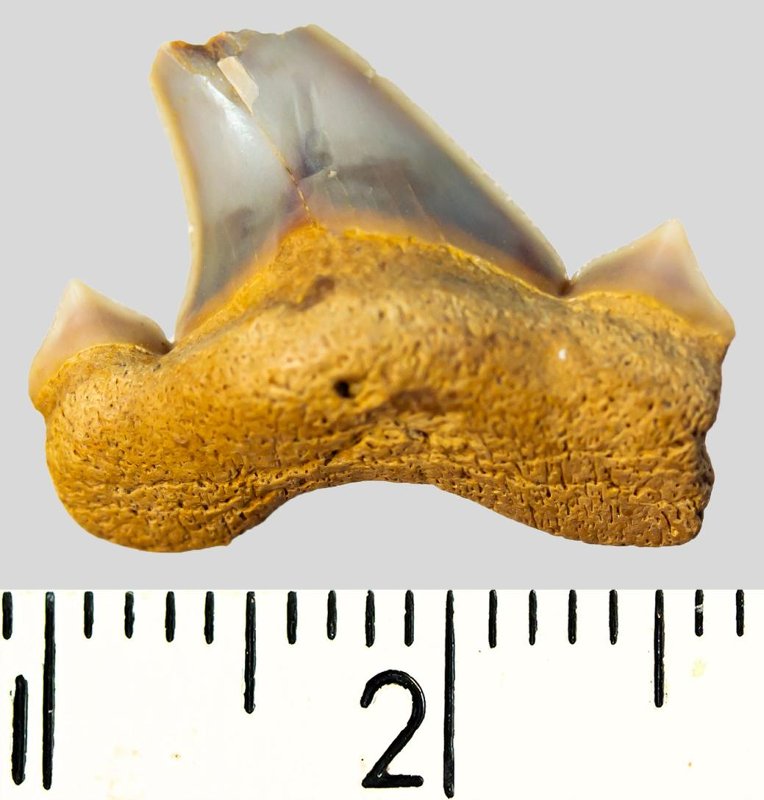 Зуб. Акула. Cretoxyrhina denticulata (Glueckman, 1957). Классификация: Хордовые Chordata, Позвоночные Vertebrata, Хрящевые рыбы Chondrichthyes, Пластиножаберные Elasmobranchii, Акулы Selachii, Ламнообразные Lamniformes, Cretoxyrhinidae