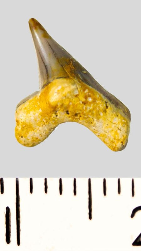 Зуб. Акула. Palaeoanacorax volgensis Glickman, 1971. Классификация: Хордовые Chordata, Позвоночные Vertebrata, Хрящевые рыбы Chondrichthyes, Пластиножаберные Elasmobranchii, Акулы Selachii, Ламнообразные Lamniformes, Anacoracidae