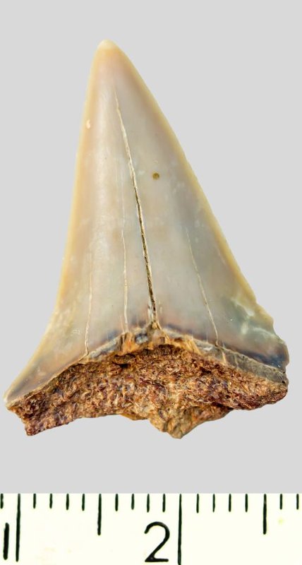 Зуб (фрагмент). Акула. Cretoxyrhina denticulata (Glickman, 1957). Классификация: Хордовые Chordata, Позвоночные Vertebrata, Хрящевые рыбы Chondrichthyes, Пластиножаберные Elasmobranchii, Акулы Selachii, Ламнообразные Lamniformes, Cretoxyrhinidae