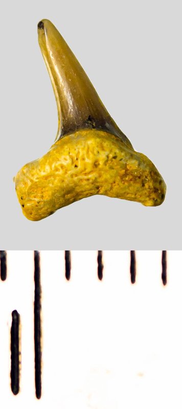 Зуб. Акула. Eostriatolamia subulata (Agassiz, 1843). Классификация: Хордовые Chordata, Позвоночные Vertebrata, Хрящевые рыбы Chondrichthyes, Пластиножаберные Elasmobranchii, Акулы Selachii, Ламнообразные Lamniformes, Песчаные акулы Odontaspididae