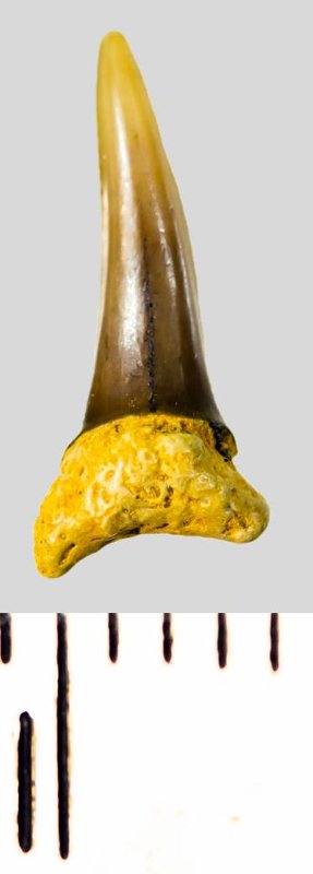 Зуб. Акула. Eostriatolamia subulata (Agassiz, 1843). Классификация: Хордовые Chordata, Позвоночные Vertebrata, Хрящевые рыбы Chondrichthyes, Пластиножаберные Elasmobranchii, Акулы Selachii, Ламнообразные Lamniformes, Песчаные акулы Odontaspididae