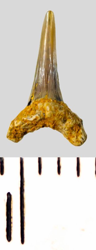 Зуб. Акула. Eostriatolamia subulata (Agassiz, 1843). Классификация: Хордовые Chordata, Позвоночные Vertebrata, Хрящевые рыбы Chondrichthyes, Пластиножаберные Elasmobranchii, Акулы Selachii, Ламнообразные Lamniformes, Песчаные акулы Odontaspididae