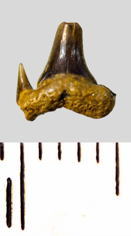 Зуб. Акула. Eostriatolamia subulata (Agassiz, 1843). Классификация: Хордовые Chordata, Позвоночные Vertebrata, Хрящевые рыбы Chondrichthyes, Пластиножаберные Elasmobranchii, Акулы Selachii, Ламнообразные Lamniformes, Песчаные акулы Odontaspididae