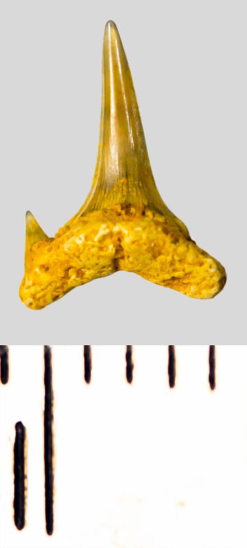 Зуб. Акула. Eostriatolamia subulata (Agassiz, 1843). Классификация: Хордовые Chordata, Позвоночные Vertebrata, Хрящевые рыбы Chondrichthyes, Пластиножаберные Elasmobranchii, Акулы Selachii, Ламнообразные Lamniformes, Песчаные акулы Odontaspididae