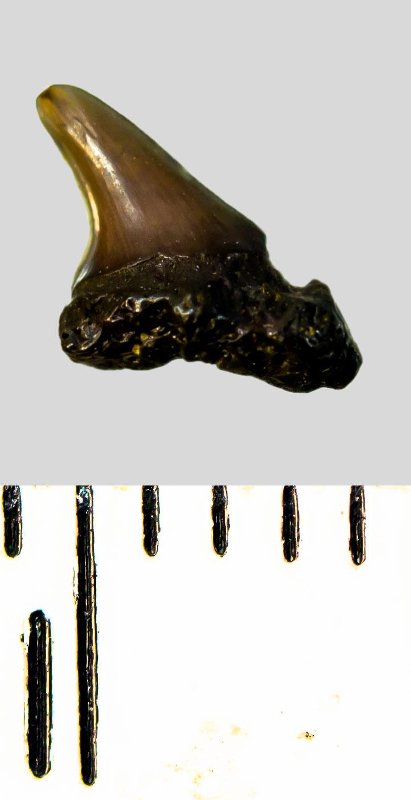Зуб. Акула. Eostriatolamia subulata (Agassiz, 1843). Классификация: Хордовые Chordata, Позвоночные Vertebrata, Хрящевые рыбы Chondrichthyes, Пластиножаберные Elasmobranchii, Акулы Selachii, Ламнообразные Lamniformes, Песчаные акулы Odontaspididae