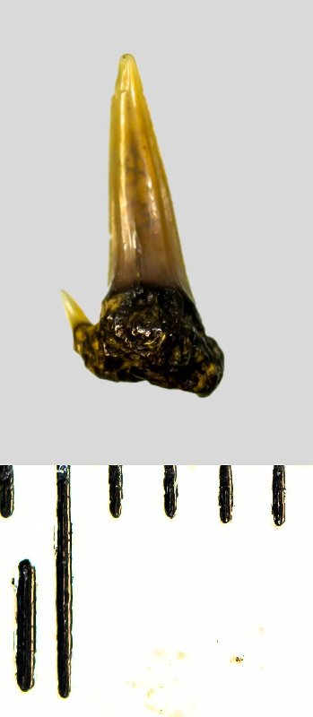 Зуб. Акула. Eostriatolamia subulata (Agassiz, 1843). Классификация: Хордовые Chordata, Позвоночные Vertebrata, Хрящевые рыбы Chondrichthyes, Пластиножаберные Elasmobranchii, Акулы Selachii, Ламнообразные Lamniformes, Песчаные акулы Odontaspididae
